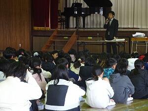腹式呼吸の仕方も教えてくれ、勉強にもなりました。校歌もみんなで一緒に歌いました。声楽を生で聴く貴重な体験となりました。