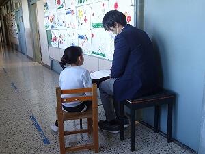 <朝の準備を6年生が優しく教えてくれました。読み聞かせもしてくれてありがとう>