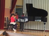 11月30日音楽朝会が全校児童参加で行われました。校長先生のギターと佐山先生のピアノの伴奏に合わせて
