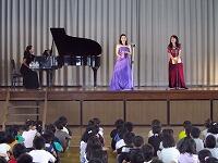 「ふるさとの四季(メドレー)」「ロマンチストの豚」「猫の二重唱」などを披露していただきました。児童たちは、声の美しさや大きさ、ハーモニーのすばらしさ、楽しい表現に浸りました。最後に南小校歌を全員で歌いました。