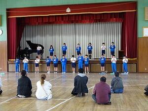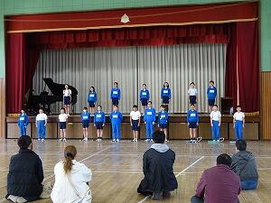 5年生の授業参観は体育「跳び箱運動」。自分で出来そうな高さを選び、台上前転の練習をしました。友達のやっているところをタブレットで撮影し、互いに助言・励ましをしながらの練習です。みんな恐怖心に負けずに頑張りました。後半は、音楽 合唱「地球の向こう側の君へ」と合奏「風とケーナのロマンス」を披露しました。本来であれば、1・2組合同での合唱・合奏の予定でしたが、学級閉鎖中ということで、2組だけの披露となりましたが、きれいな歌声・音色を披露できました。