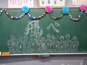 黒板には、担任からのメッセージが・・・。