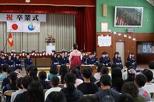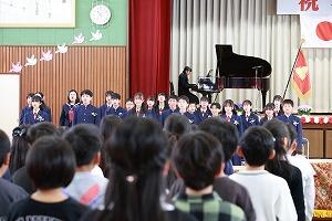 小学校で歌う最後の校歌です。心を込めて歌いますが、声にならない人もいるようです。