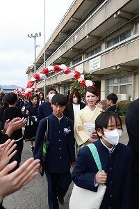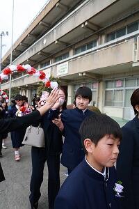 そして、締めくくりとして、校庭で4・5年生と先生たちの列の間を通って、校門まで見送られました。お世話になった先生たち、一緒に遊んだりクラブや委員会などを行った4・5年生とのお別れです。