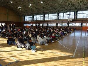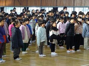校長先生の話では、①「自信をつける3学期にしよう。」、②「ありがとうの気持ちを言葉や行動で表す3学期にしよう。」、③「ラストスパートの3学期。一日一日を大切にしよう。」という話と、「いじめのない(ほかの人の心や体を傷つけることのない)学校にしよう。」という話がありました。