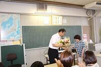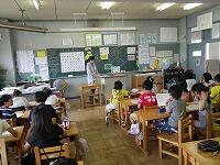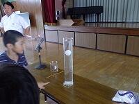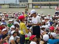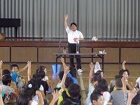 月1回の全校朝会が行われました。校長先生のお話は夏休みの自由研究のすすめがテーマでした。校長先生が沈んだ卵を食塩を入れることにより浮かせる演示実験をしながらお話してくださいました。子どもたちは目を輝かせて卵が浮き上がる様子をみつめました。浮き上がる卵に歓声がわきました。