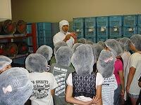 大平を車窓見学し、ひざつき製菓工場に向かいました。おせんべい工場を見学させていただきました。