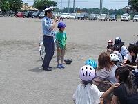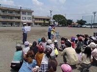 3年生が自転車の安全教室を行いました。親子交流活動として親子で参加しました。講師として栃木警察署の2名の警察官の方が指導にあたってくださいました。自転車に乗るときの注意をクイズを交えてお話していただきました。いよいよ模擬道路での乗り方の実践練習です。児童は親の見守る中、信号機のある交差点の渡り方や踏切の渡り方など真剣に取り組んでいました。