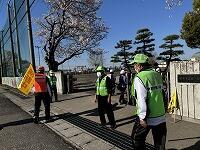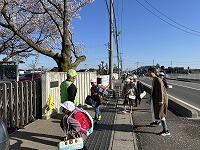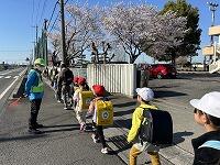 <交通ボランティアさんに見守られ、ランドセルを背負って元気に登校>
