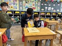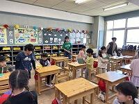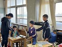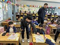 <教室に入ると、6年生がやさしく朝の準備の仕方を教えてくれました>
