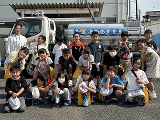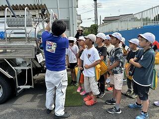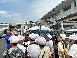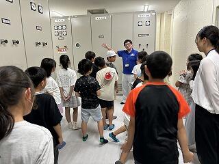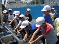 薗部浄水場の係の方の案内で、浄水場内のいろいろな設備を見学させていただきました。汲み上げた地下水を消毒して、安全な水にする方法を教えていただきました。子ども達は、停電があったり、機械の故障があったり、災害があったりしても安全な水をみんなに届けるためのいろいろな工夫がされていることに気づくことができました。また、できたての水を飲ませていただき、「おいしい」と笑顔があふれ、これからはもっと水を大切にしたいと感じていました。