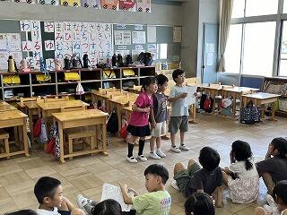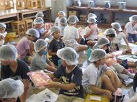 ひざつき製菓の方が出前授業に来てくださいました。工場見学の時と同じ様に白いネットをかぶって「オンライン工場見学」をしました。1日に、7トン分のお米を使って200万枚のおせんべいが作られていることや、15万袋以上のえびせんべいが作られていることを知って、子どもたちはびっくりしていましたおやつタイムには、おいしいおせんべいをごちそうになり、みんなニコニコでした