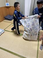 寒い中、登校してきた子供たちは、中学生のお兄さんを見ると一瞬で笑顔