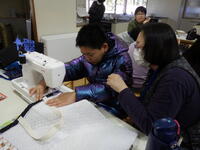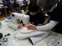 6年生が、家庭科の時間にミシンを使ってトートバックを作りました。