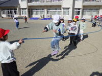 ながなわ大会に向けて、昼休み、校庭では多くのクラスが練習しています。