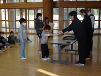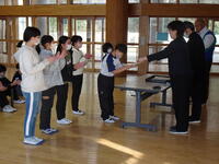 11日の業間に今年度最後のなかよしタイムがありました。6年生と遊べるのも最後です。始めに、なかよし班のプレートを6年生から5年生にしっかりと引き継ぎました。