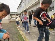 毎年、3学期になると、1年生は、歴代PTA会長さんやボランティアのおじいさん・おばあさんにお世話になって、昔遊びを教えていただいています。今年はコロナウイルスの影響で来ていただくことはできませんが、歴代PTA会長の天海さんと柳田さんに、手作り『ぶんぶんごま』を作ってプレゼントしていただきました。子ども達は、自分で色塗りをして完成した『マイぶんぶんごま』に夢中です