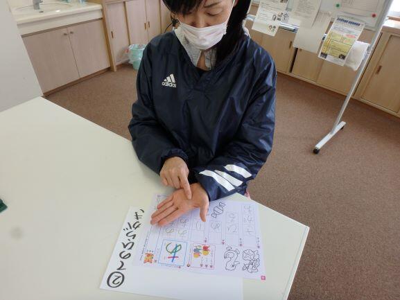 ②てのひらがき(てのひらに、ゆびでかきます。)