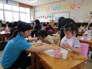 やり方を優しく教えてくれたり、一緒に遊んでくれたり…2年生はとっても優しくて、「もっと遊びたかった」と、1年生はみんな大喜びでした。最後にプレゼントもいただいて、ニコニコ笑顔の時間を過ごしました。