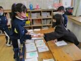 国語「ものの名まえ」の学習では、一つ一つのものの名前を集め、カードにまとめました。「お店の人」「お客さん」のそれぞれの話し方を練習し、言葉のやりとりを楽しみながらお店やさんごっこをしました。子どもたちは、楽しみながら、お店の人やお客さんの話し方のよいところをたくさん見つけ、お互いに賞賛し合っていました。「楽しかった。」「またやりたい」と大好評でした。
