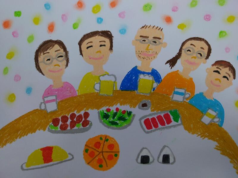 越沼作「家族で夕ご飯」 長谷部作「愛犬ぽんと散歩」