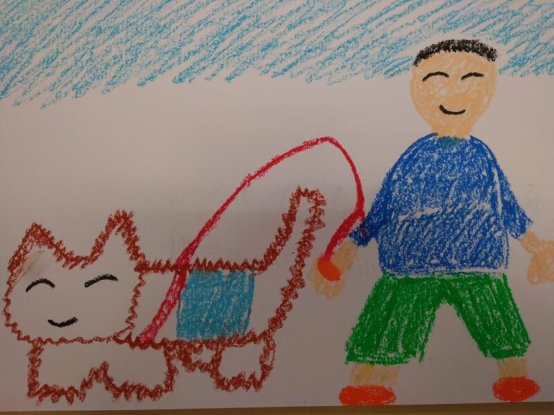 好きなことを画用紙いっぱいに描いて、子どもたちの気持ちが晴れることを願って出した課題です。楽しんで取り組んでいただけたら幸いです。