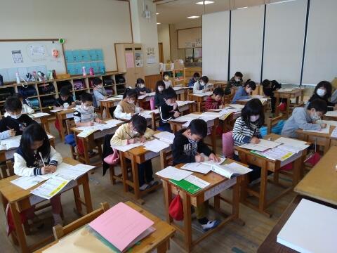 今年度初めてとなる授業参観を2年生が行いました。1組と2組の参観時間を分けて、会場をランチルームとして実施しました。生活科で予定している「まちたんけん」に向け、ふるさとクイズをしたり、インタビューをしたり、楽しい授業参観となりました。久しぶりに保護者の皆様に学校のようすを見てもらい、子どもたちもみんな笑顔で学習していました。