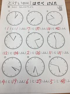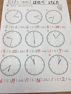 今のうちに時計がしっかりと読めるように復習しましょう。
