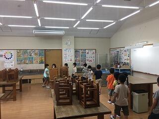 今年は、学校のことを1年生に教えました。「ここは理科室だよ。」