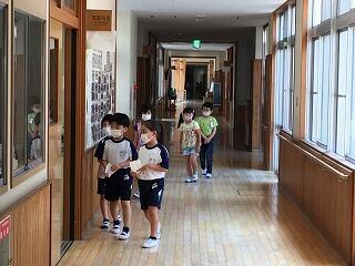 6月29日(水)に、生活科まちたんけんに行ってきました。猛暑の中ということで、1組は「盤峰園」様と「いろり庵 洗心」様に、2組は「玉正寺」様にと、手分けして探検してきました。子どもたちは暑さに負けず、積極的に見学をし、たくさん質問もしてきました。探検で学んだことは、お互いにまとめて発表し合い、交流をする予定です。
