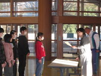 寒い中、登校してきた子供たちは、中学生のお兄さんを見ると一瞬で笑顔