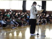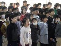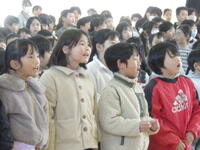 最後に、代表児童の感謝の作文と、全校生の歌のプレゼントを贈りました。