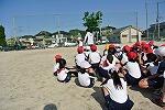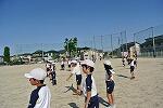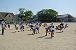 体育では,キックベースに取り組んでいます。寒さ厳しい日でしたが,子どもたちは大盛り上がり。仲間と協力して取り組んでいます。チームは,1組と2組混合チームです。点数が入ると