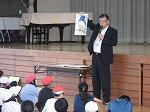 1年生にもよく分かるように、ご自身の体験と絵本などを活用して、骨髄移植について教えてくださいました。子どもたちは、大島先生のお話を真剣な眼差しで聞いていました。