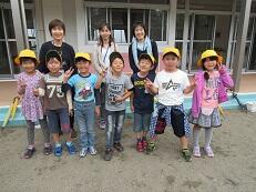 初めての校外学習で、2年生に手をつないでもらいながら、大平運動公園へ行きました。
