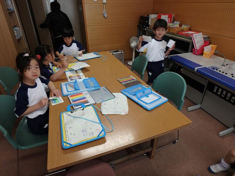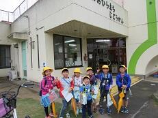 グループごとに、めあてを決めたり、質問の練習をしたりして迎えた当日、ドキドキしながら出発しましたが、雨にも負けず、力を合わせて、元気いっぱいたんけんに行くことができました