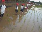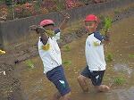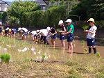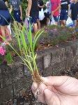 土から引っ張って抜いて、実が顔を出すと、歓声が上がりました。