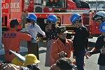 消防士のみなさんに説明を聞いたり、消防車を見せてもらったり、