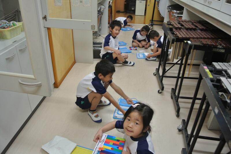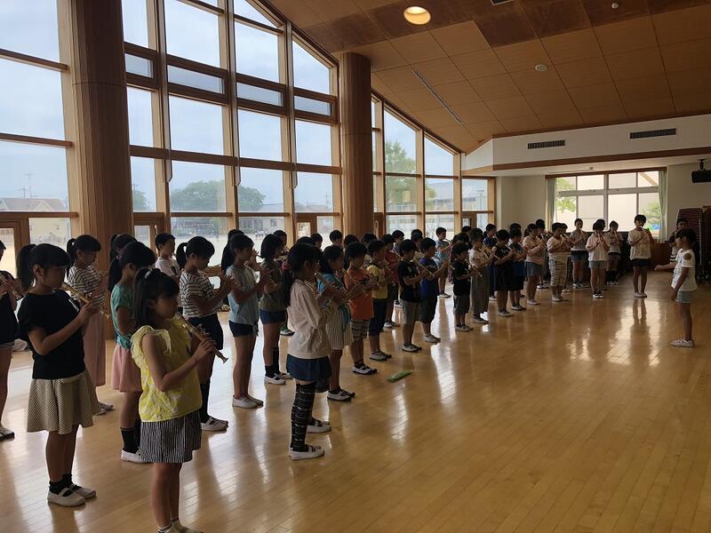 「きりん」「三辺返し」「八木節」「校歌」の演奏を6年生に教えてもらっています。