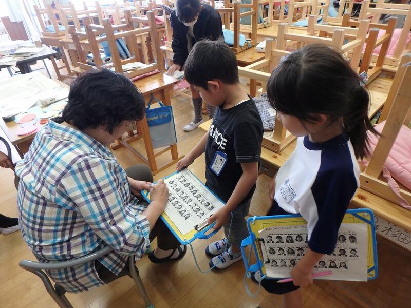 真剣な表情で,とても集中して取り組んでいました。鈴木さんの丁寧なご指導のおかげで,子どもたちは手話をあっという間に覚えることができました。これからも練習を続けていきたいと思います。