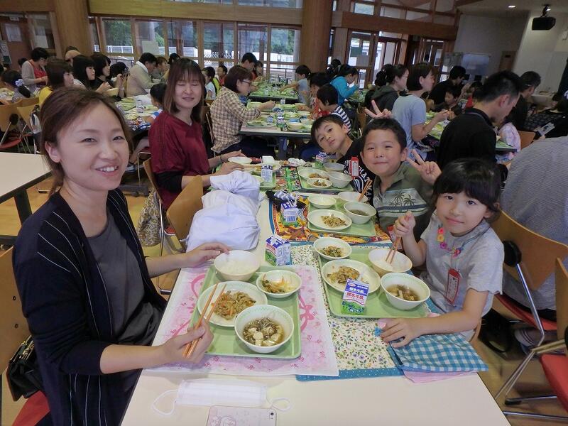 5月26日に,親子ふれあい給食会を行いました。おうちの人と給食を食べるのは1年生の時以来で,子どもたちもこの日をとても楽しみにしていました。