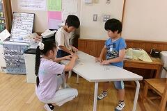 」子どもたちは、周りのお友達と意見交換しながら真剣に考えていましたよ。