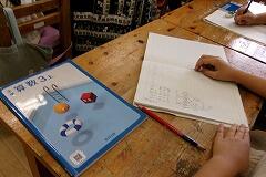 一人でノートを使って考えたり、二人で協力したり、おはじきを使って考えたり等、意欲的に学んでいました。