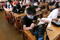 授業で、タブレットを活用して学習を進めています。