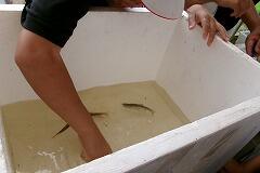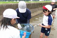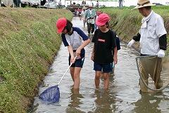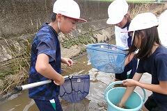 初め水に入るのを怖がっていた児童もすぐ慣れて、たくさんの生き物を探すことができました。