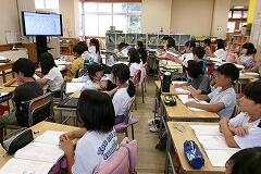 その後、担任の先生が子どもたちの考えを集約して、プロジェクターの画面や黒板で解決方法をまとめていきました。