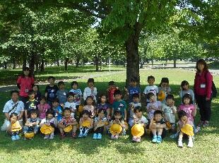 初めての校外学習で、2年生に手をつないでもらいながら、大平運動公園へ行きました。