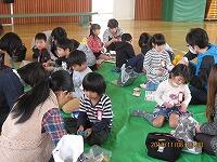 11月6日、1年生の親子学習が実施されました。歴代PTA会長さんを講師にお迎えし、ぶんぶんごまと空き缶ぽっくりを親子で作りました。作り終わった後は、完成したぶんぶんごまを回したり、空き缶ぽっくりにのって歩いてみたりしました。親子で仲良く作っている姿がとても微笑ましかったです。その後、ランチルームで給食試食会を行いました。保護者の方々に子どもたちの当番の様子を見ていただき、おいしい給食を一緒に食べました。