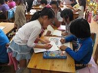 2年生が1年生に駅のことや電車の乗り方についてやさしく教えてくれました。