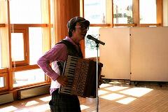 アコーディオン奏者の新井武人さんが御来校くださり、昼休みにアコーディオン演奏会を行いました。